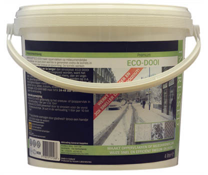 - Gebruik ECO-DOOI preventief door te strooien voor de vorst of sneeuwval (max. 24 uur) in de verhouding 1 liter per 10 tot 15m2